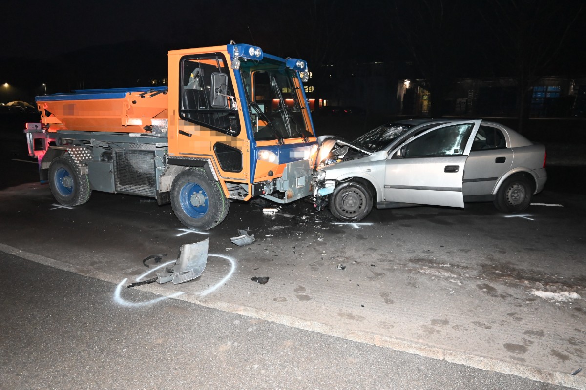 In der Folge prallte das Auto frontal in einen entgegenkommenden Lastwagen des Strassenunterhalts. Dabei wurden der Autofahrer und sein 33-jähriger Beifahrer leicht verletzt. Der 33-Jährige musste vom Rettungsdienst ins Spital gebracht werden. Es entstand Sachschaden im Wert von rund 20'000 Franken.