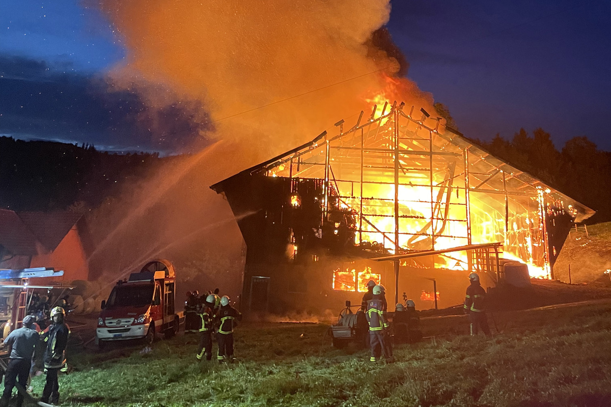 Am Samstagabend brannte in Sigriswil eine Scheune komplett nieder. Personen und Tiere wurden keine verletzt. Ermittlungen zur Brandursache sind im Gang.