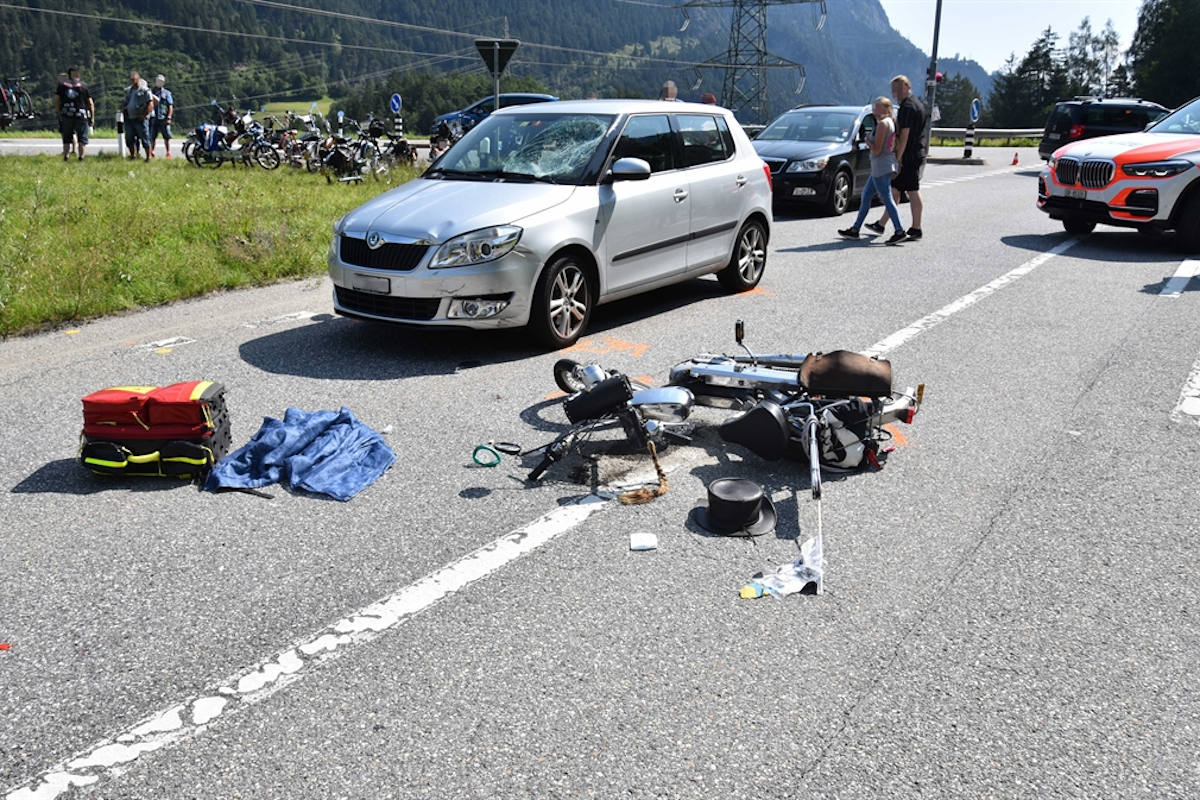 Der Zweiradlenker wurde schwer verletzt, durch ein Ambulanz-Team des Spitals Thusis erstversorgt, und mit der Rega ins Kantonsspital Chur überführt. Am Personenwagen und am Motorfahrrad entstand Sachschaden.