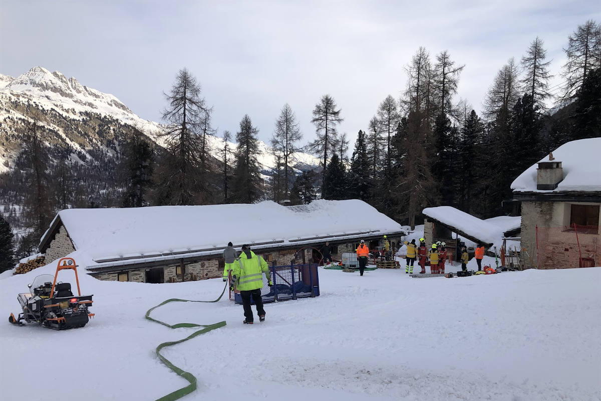 Als Mitarbeitende gegen 8:30 Uhr das Restaurant auf der Alp Prasüra betreten wollten, stellten sie Feuer an der Theke und eine starke Rauchentwicklung fest. 20 Einsatzkräfte der alarmierten Feuerwehr Trais Lejs kamen mit Raupenfahrzeugen vor Ort. Die Helibernina flog einen Wassertank, Pumpen und Schläuche zum Brandort.