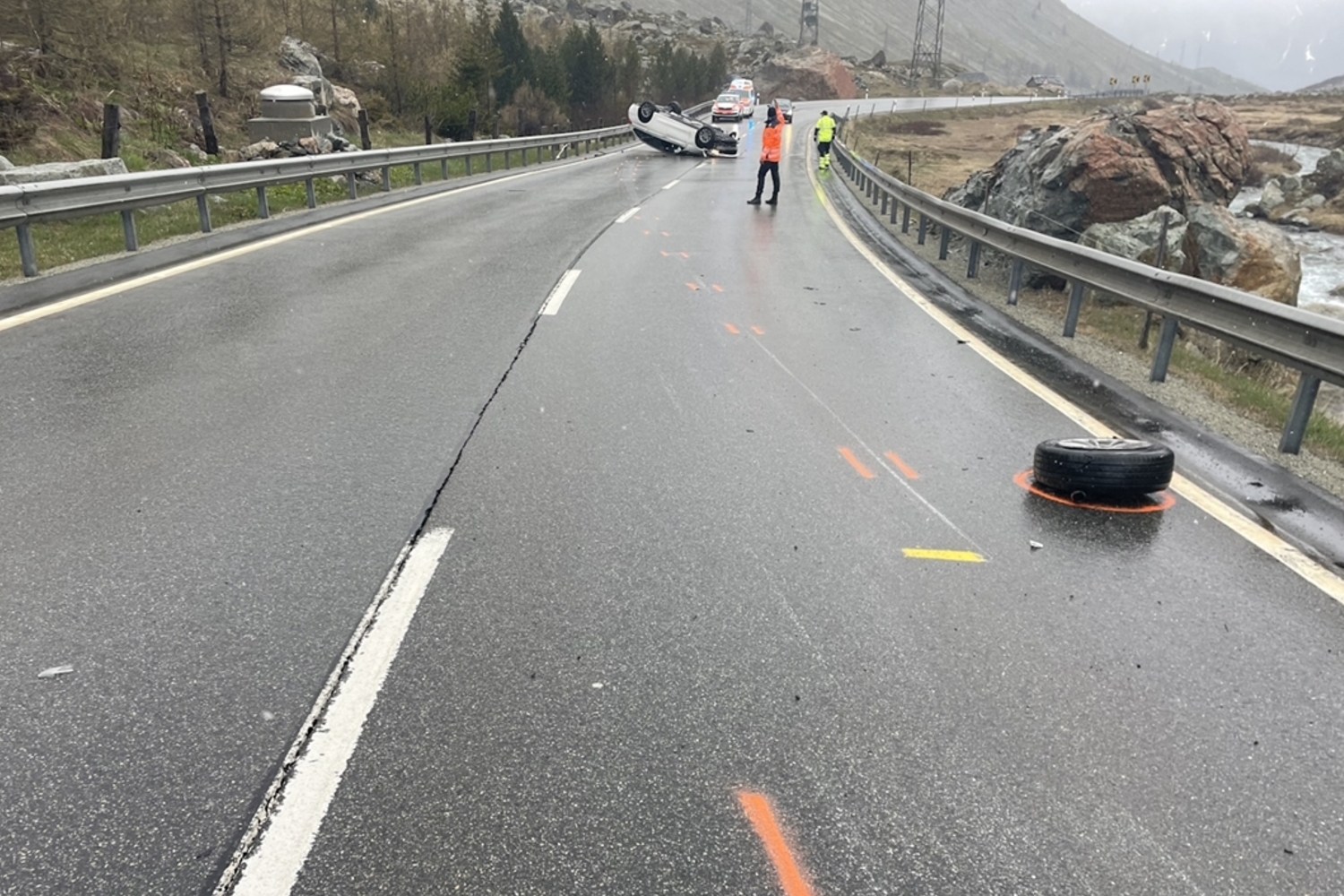 Am Julierpass überschlug sich ein Auto bei einem Verkehrsunfall nach einer Kollision mit der Leitplanke.
