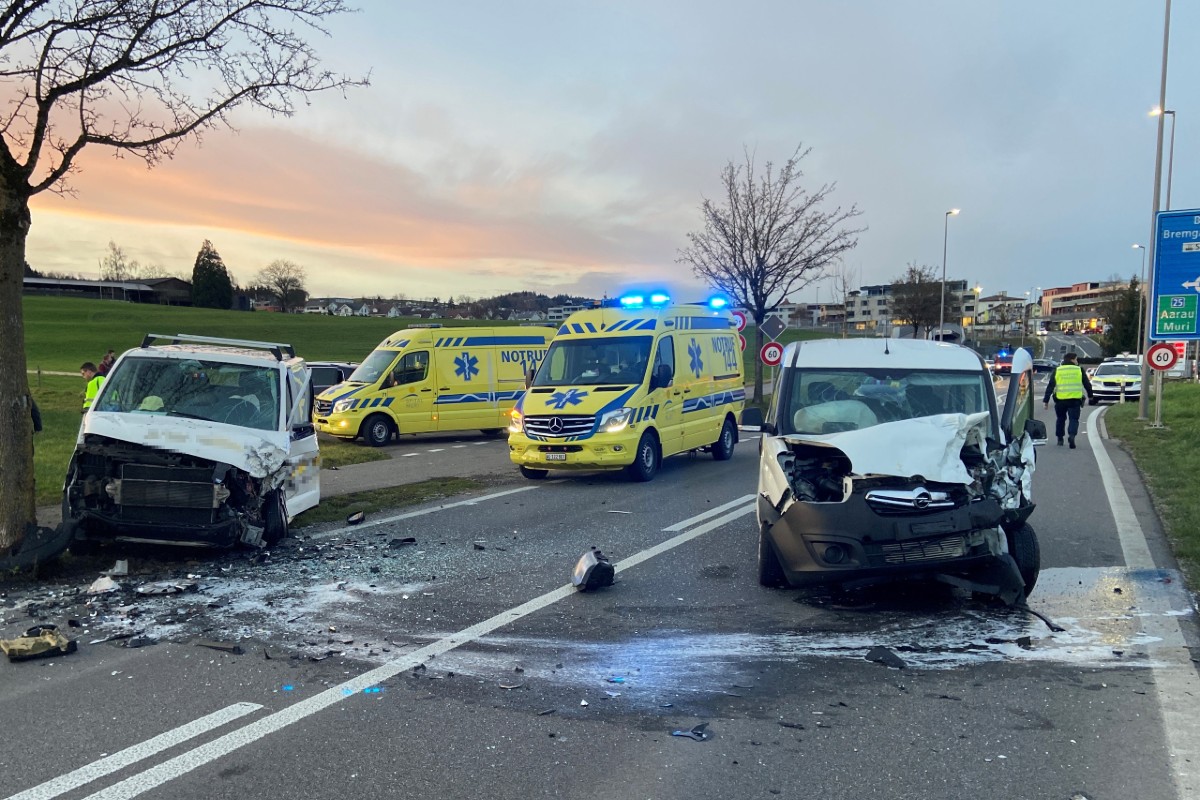 Sins AG - Frontalkollision zwischen Lieferwagen fordert drei Verletzte