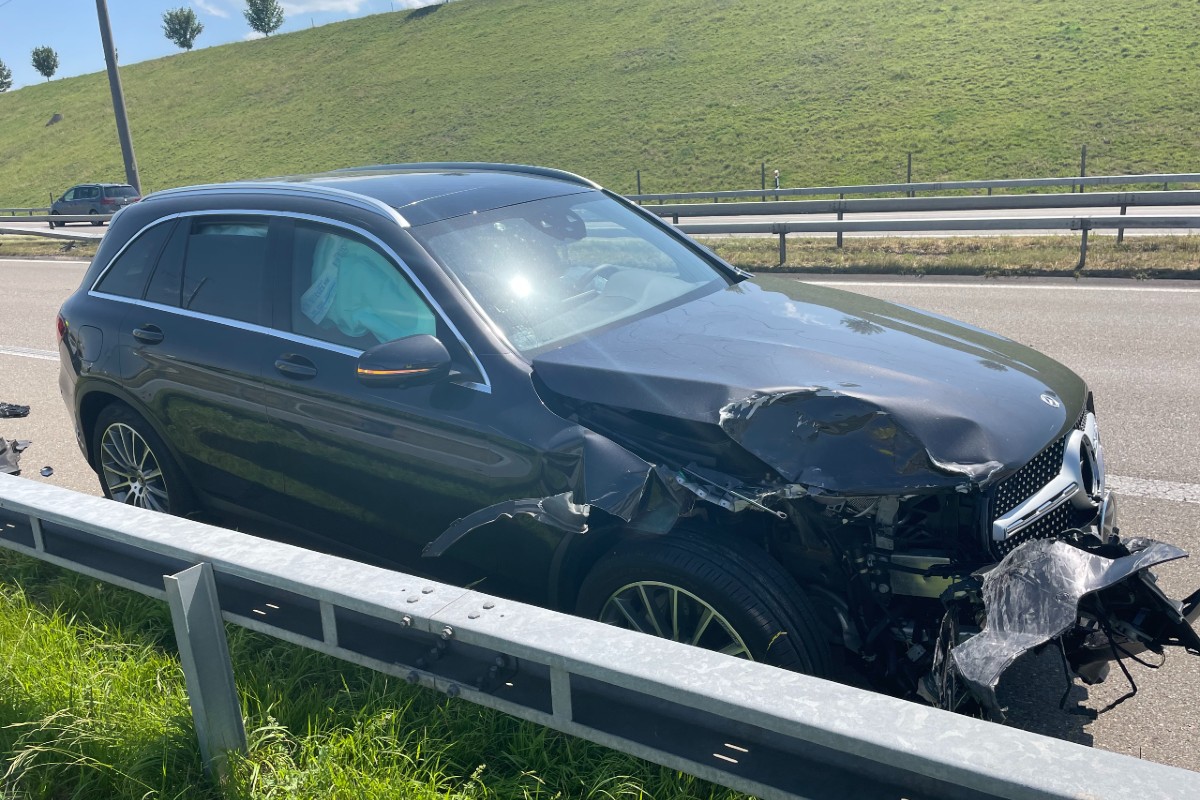 Kurz nach 14.30 Uhr war ein 25-jähriger Autofahrer auf der Normalspur in Richtung Zürich unterwegs. Aus noch ungeklärten Gründen fuhr er in das vorausfahrende Auto. Dabei zog er sich leichte Verletzungen zu und musste durch den Rettungsdienst ins Spital gebracht werden. Der 80-jährige Fahrer im vorderen Fahrzeug wurde nicht verletzt.