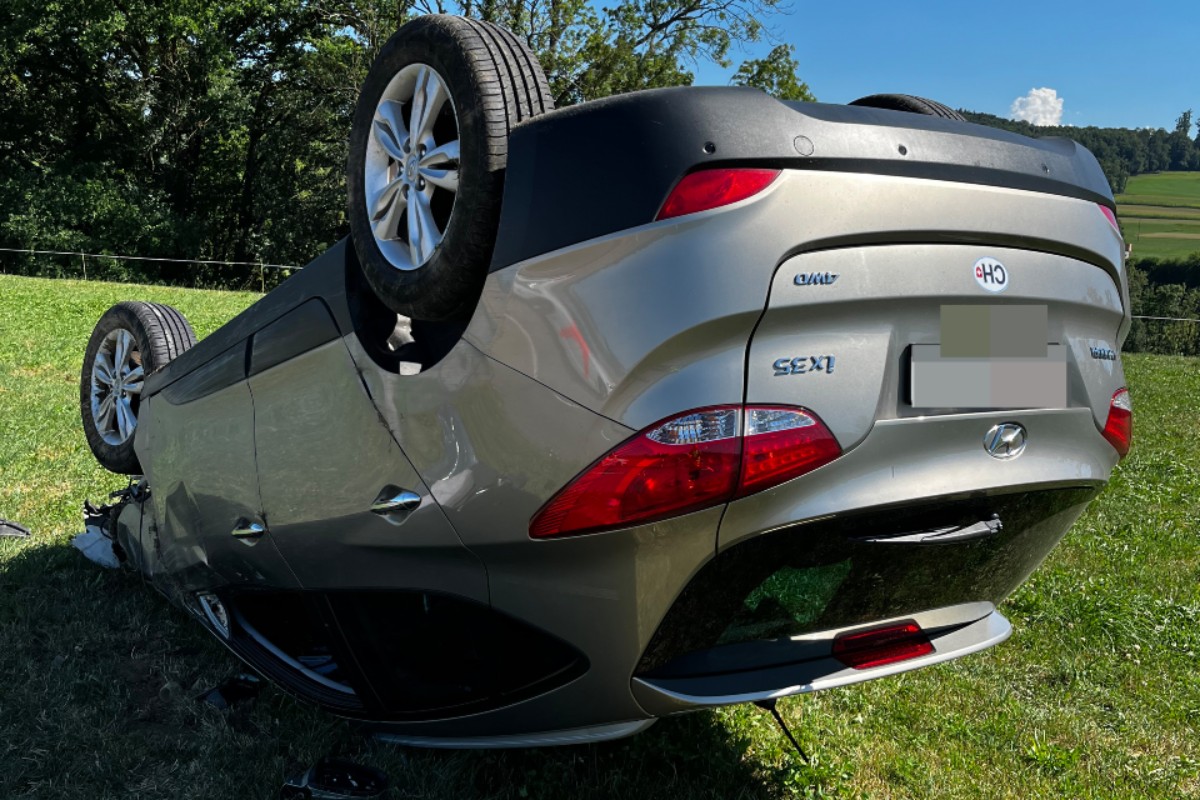 Dabei kollidierte das Fahrzeug mit etlichen Holzpfählen, überschlug sich und kam auf dem Dach liegend zum Stillstand.