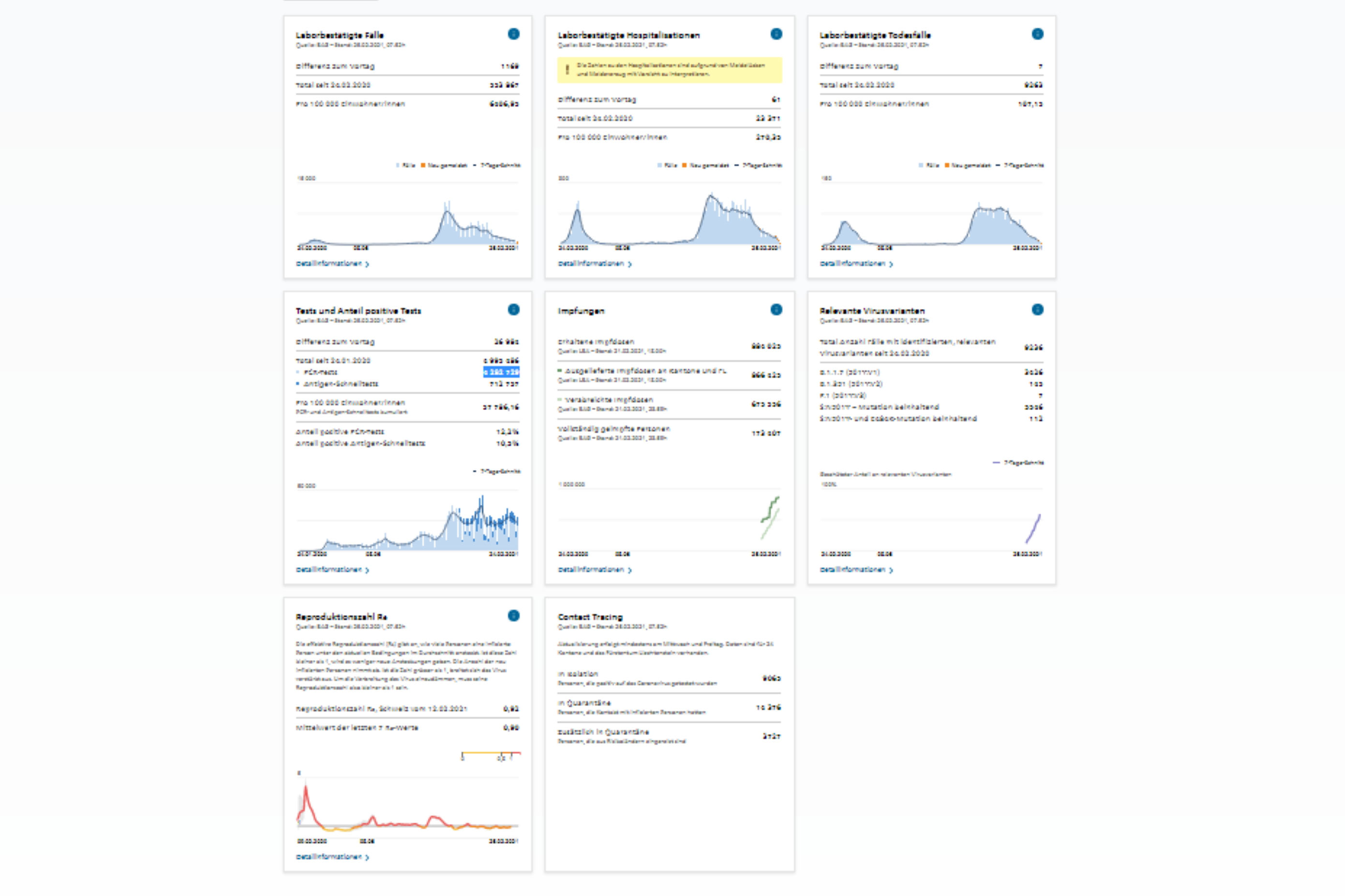 - Hospitalisationen insgesamt 23'371, 61 neue Hospitalisationen in den letzten 24 Stunden.