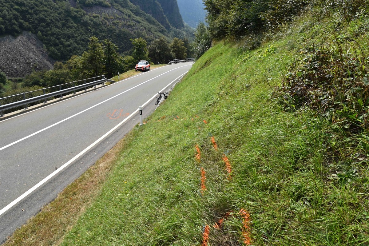 Ein Rennvelofahrer verletzte sich gestern bei Soazza GR mittelschwer. (Bildquelle: Kantonspolizei Graubünden)