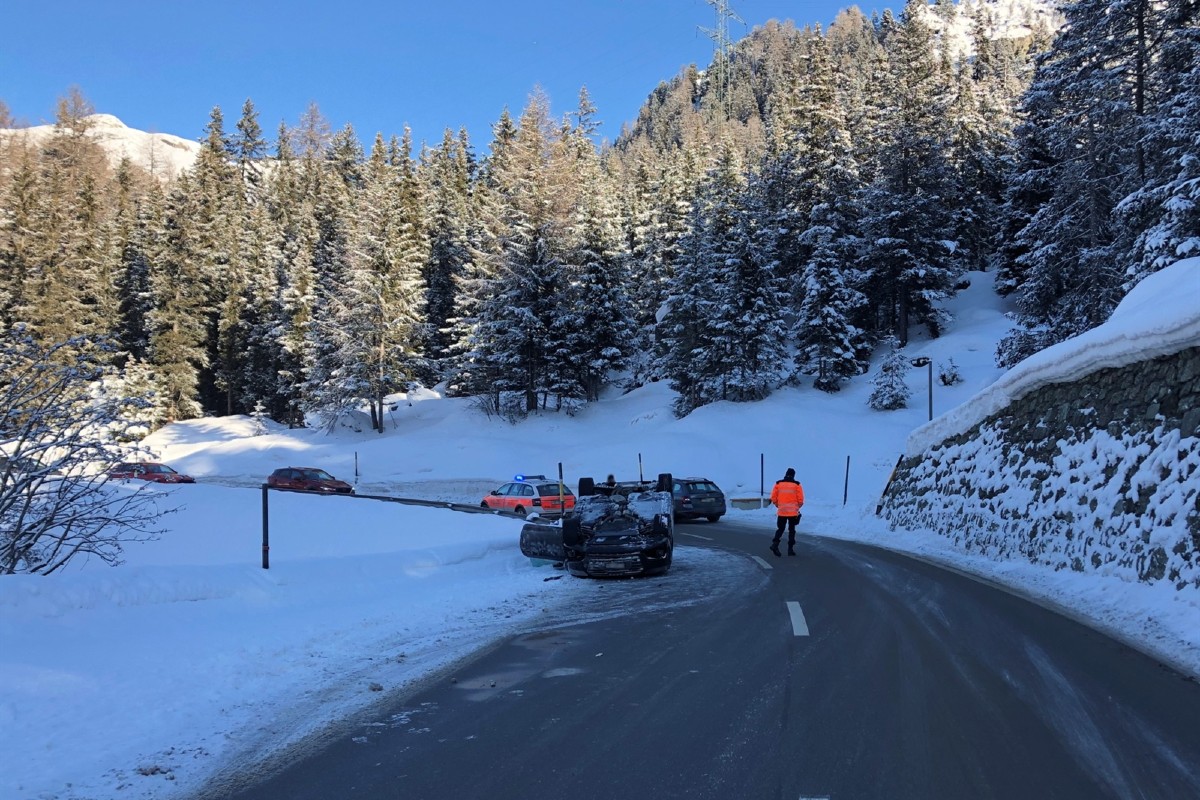 Der 33-jährige Automobilist fuhr gestern von Savognin kommend über die Nationalstrasse in Richtung Bivio. Um 12.30 Uhr rutschte das Fahrzeug in einer Rechtskurve geradeaus und kollidierte mit einer Stützmauer. Durch die Kollision kippte das Auto und kam auf dem Dach liegend zum Stillstand.