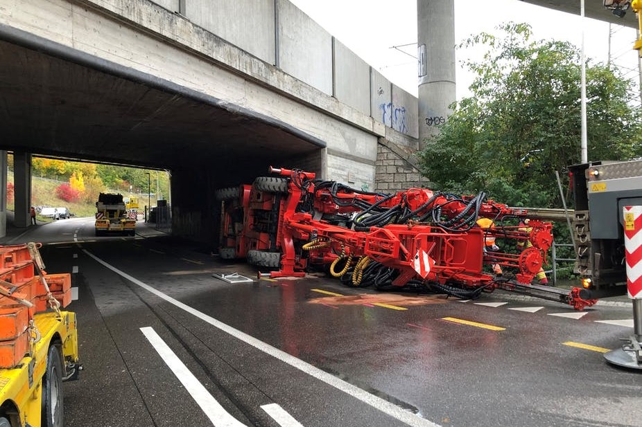 Die Meldung zu einem Unfall in Worblaufen Gemeinde Bern ging am Donnerstag, 22. Oktober 2020, kurz vor 11.25 Uhr, bei der Kantonspolizei Bern ein. Gemäss aktuellen Erkenntnissen fuhr ein Schwertransporter, welcher eine Grossbohrmaschine geladen hatte, auf der Worblaufenstrasse von Worblaufen herkommend in Richtung Wankdorf. Bei der Eisenbahnunterführung auf Höhe Löchligutweg kollidierte die Bohrmaschine mit der Brücke und kippte dadurch vom Lastwagen. Es wurde niemand verletzt.