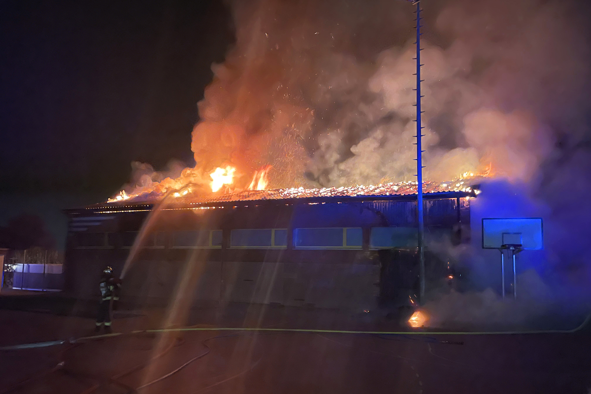 Gemäss ersten Erkenntnissen und aus noch zu klärenden Gründen ist eine Holzpalette mit mehreren Gegenständen an der Fassade der Turnhalle in Brand geraten. In der Folge griff das Feuer auf die Gebäudefassade und das Dach der Turnhalle über. Der Brand konnte durch die umgehend ausgerückten Einsatzkräfte gelöscht werden. Es wurde niemand verletzt. Eine Brandwache wurde im Anschluss an die Löscharbeiten eingerichtet.