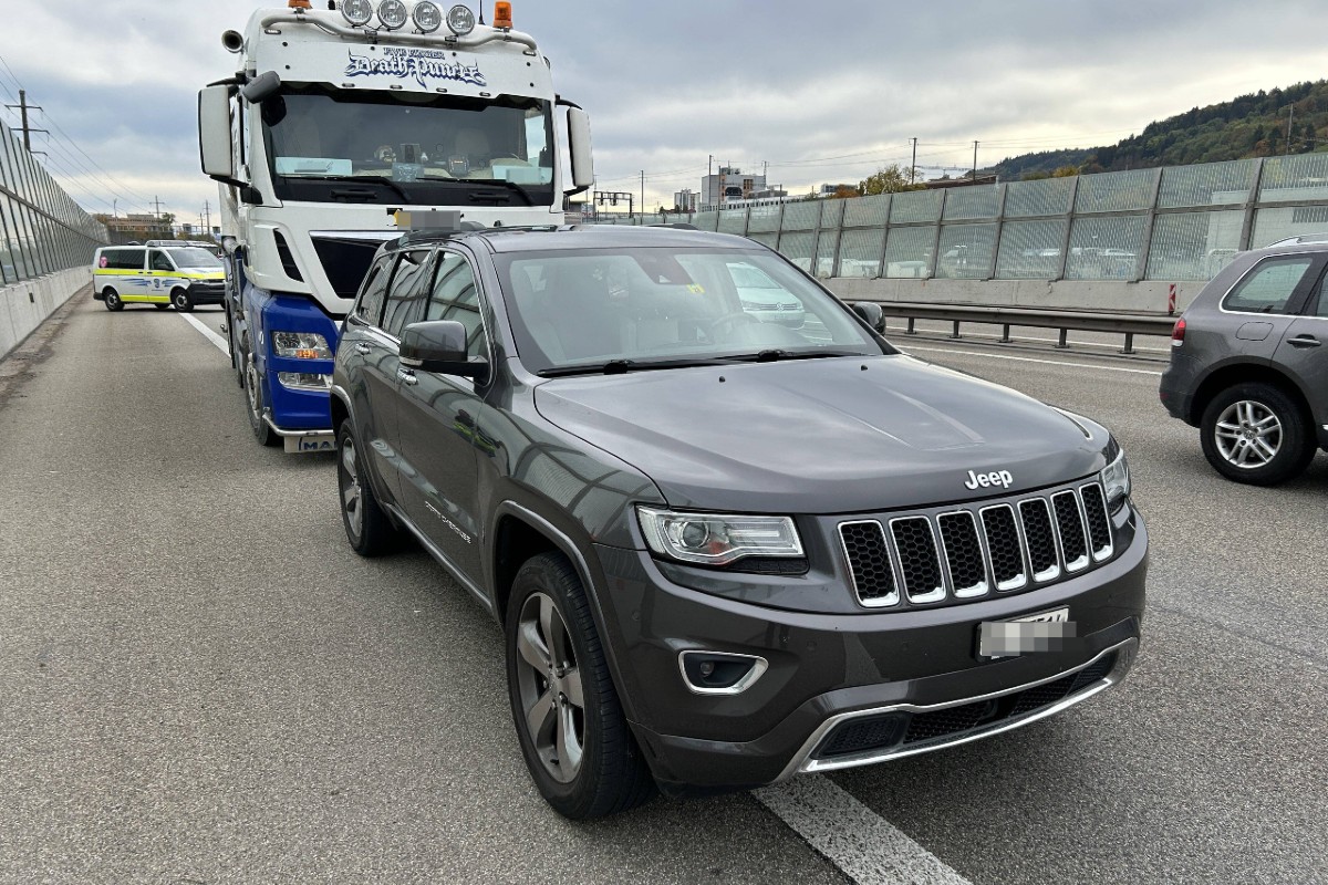 Der Unfall ereignete sich am Mittwoch, 1. November 2023, um 10.50 Uhr auf der A1 bei Spreitenbach. Dabei war ein mit Silos beladener Anhängerzug in Richtung Bern unterwegs. Hinter ihm folgte ein grauer Jeep Grand Cherokee. Im Zuge eines Spurwechsels streiften sich die beiden Fahrzeuge und wurden beschädigt. Verletzt wurde niemand.