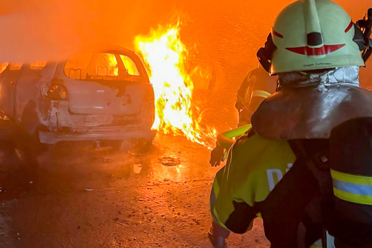 Laut ersten Ermittlungen führte ein Privatperson Schweissarbeiten an einem Auto durch. Diese Arbeiten verursachten vermutlich den Brand. Dabei brannten drei Autos aus und ein weiteres Auto wurde beschädigt.