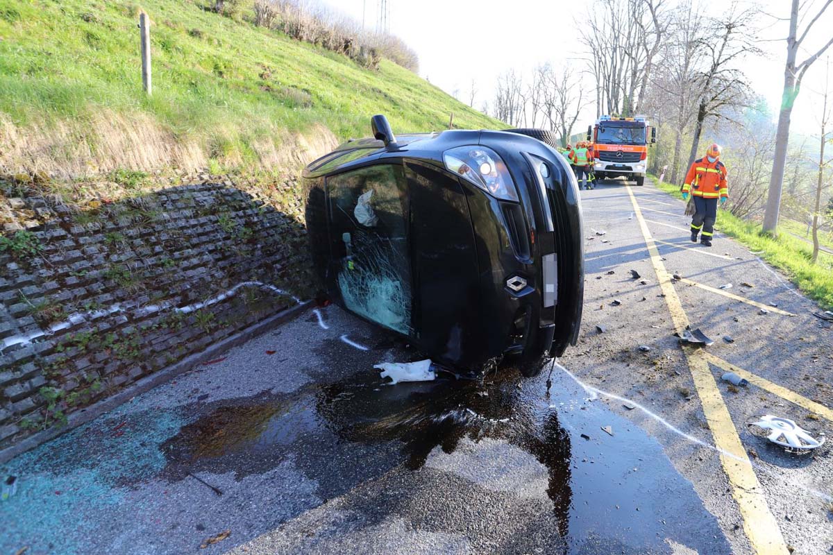 In Folge dessen kippte das Fahrzeug auf die Seite. Verletzt wurde dabei niemand. Laut eigener Aussage sei der Lenker abgelenkt gewesen.
