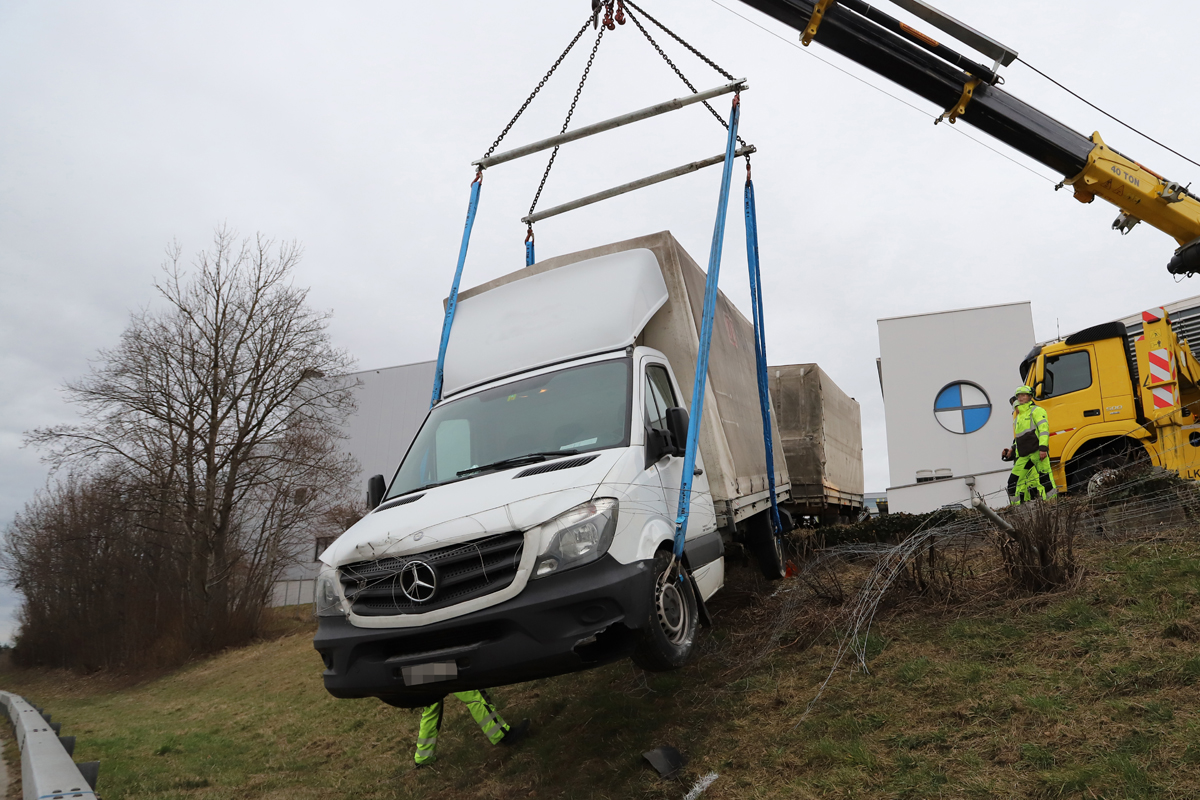 Ein parkierter Lastwagen mit Anhänger stand an einem Hang. Der 28-jährige Lenker war damit beschäftigt Waren abzuladen, als der Lieferwagen plötzlich den Hang hinunterrollte.