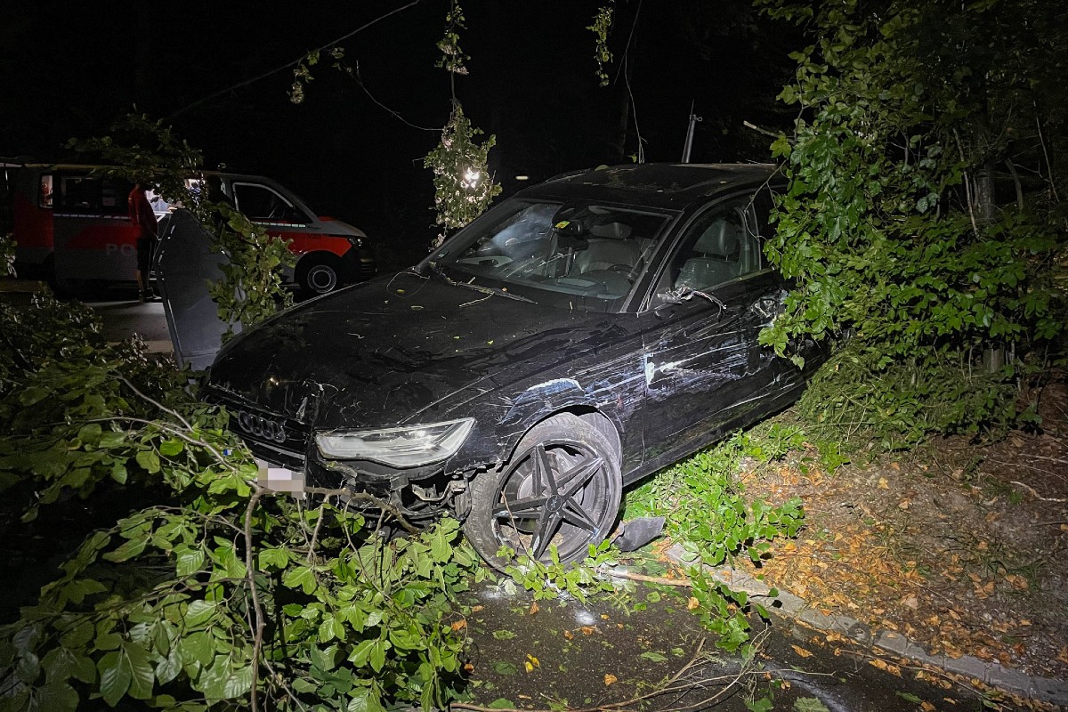 In der Nacht auf Donnerstag (24.08.2023) kam es bei der Rechenwaldstrasse, höhe Verzweigung Rechenstrasse, zu einem Selbstunfall. Ein 37-jähriger Autofahrer verlor in einer Rechtskurve die Kontrolle über sein Fahrzeug und fuhr gegen einen Baum. Verletzt wurde niemand. Es entstand erheblicher Sachschaden.