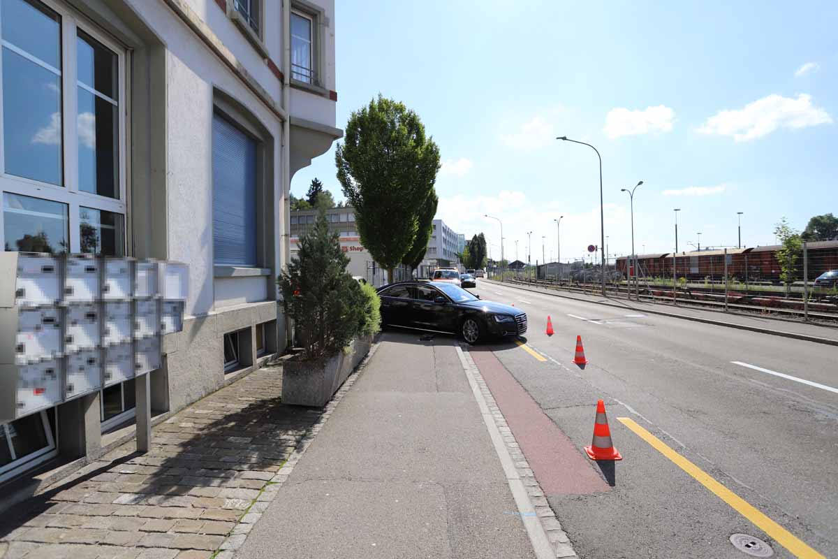 Dabei liess er sich von seinem Hund ziehen. Gleichzeitig wollte ein 51-jähriger Mann, aus einer Ausfahrt nach rechts in die Oberstrasse einbiegen. Der Hund konnte dem Auto noch ausweichen.