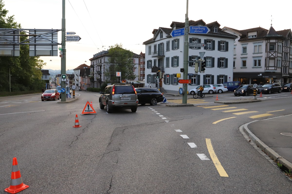 Am Mittwoch (22.09.2021) kam es bei der Verzweigung Zürcher Strasse/Feldlistrasse zu einer Kollision zwischen zwei Personenwagen. Verletzt wurde dabei niemand, es entstand jedoch erheblicher Sachschaden.