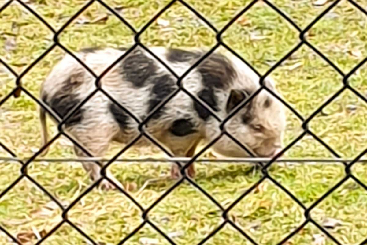 Am Dienstagnachmittag (02.02.2021) ist dem Wildpark Peter und Paul ein Hängebauchschwein zugelaufen. Die Besitzerin oder der Besitzer werden gesucht.