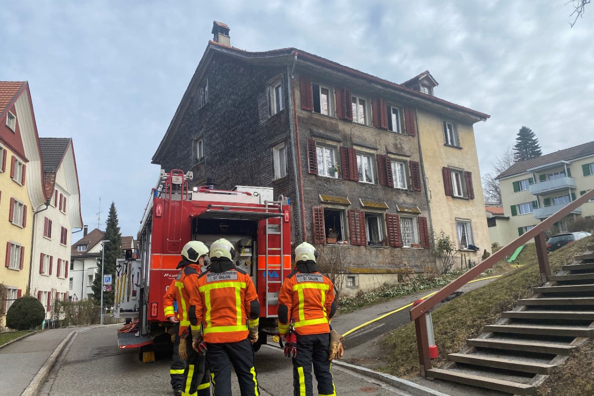Am Mittwochmorgen (02.03.2022) ist es an der Altmannstrasse zu einem Brand in einem Mehrfamilienhaus gekommen. Die Berufsfeuerwehr St.Gallen konnte den Brand schnell löschen. Zwei Personen wurden leicht verletzt.