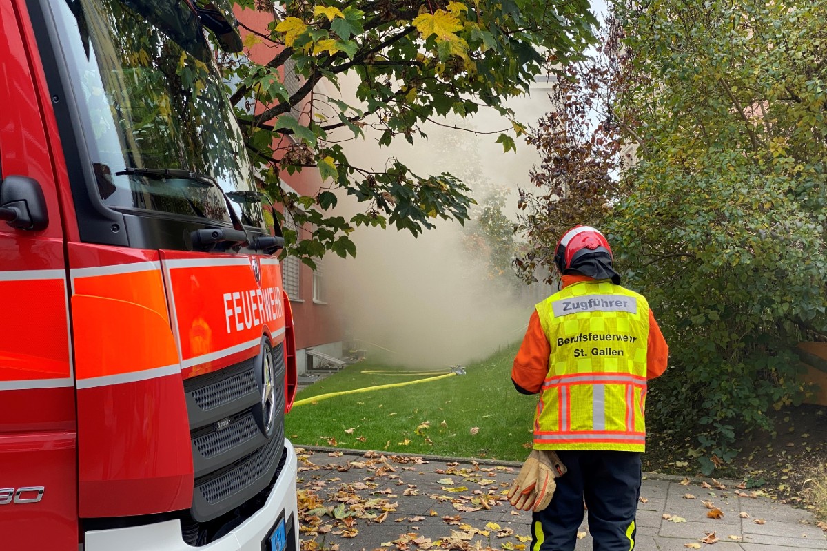 Im Einsatz standen die Berufsfeuerwehr St.Gallen, die Rettung mit zwei Rettungswagen und einem Notarzt sowie die Stadt- und Kantonspolizei St.Gallen. Das Kompetenzzentrum Forensik der Kantonspolizei St.Gallen wurde mit der Brandursachenermittlung beauftragt.