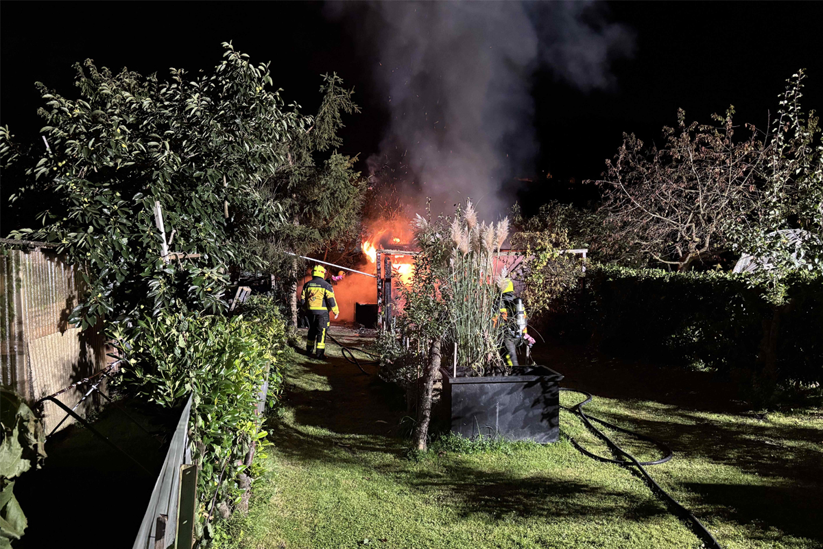 Am Samstagabend, 6. September 2025, brannte in St. Margrethen am Sportplatzweg ein Schrebergartenhäuschen vollständig nieder. Die Feuerwehr konnte ein Übergreifen der Flammen verhindern.