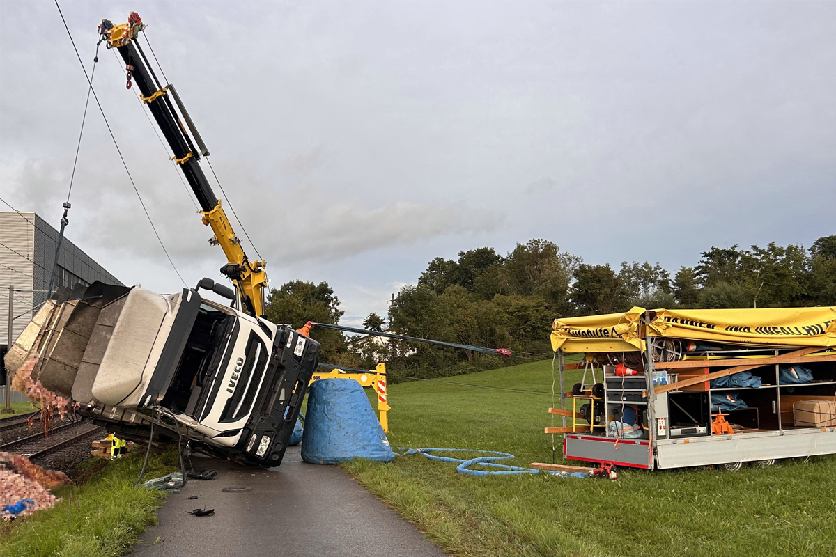 Am Donnerstag, 28. August 2025, kurz vor 16 Uhr, ist ein Lastwagen an der Bahnstrasse auf die Gleise gekippt. Die Bahnlinie musste für mehrere Stunden unterbrochen werden.