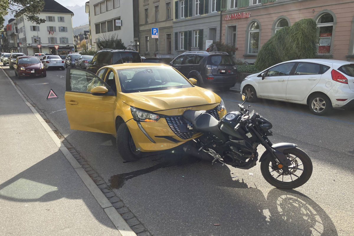 Am Samstag, 29.10.2022 um ca. 13.35 Uhr ereignete sich in Glarus auf der Burgstrasse eine Auffahrkollision zwischen einem Motorrad und einem Personenwagen.
