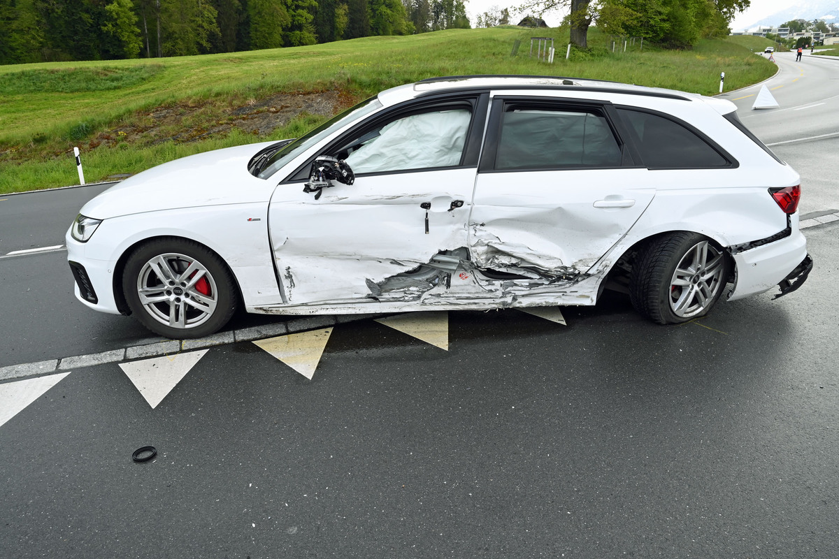 Der Fahrer dieses Autos wurde mit unbekannten Verletzungen durch den Rettungsdienst 144 ins Spital gefahren. Der andere Fahrzeuglenker verletzte sich beim Unfall leicht und wird sich selbstständig in ärztliche Behandlung begeben.