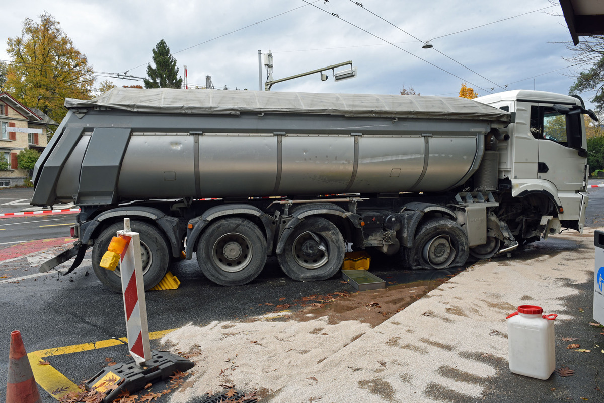 Am Montag, 13. November 2023, kurz nach 10:45 Uhr fuhr ein Lastwagen auf der Haldenstrasse in der Stadt Richtung Verkehrshaus. In der leichten Rechtsbiegung im Bereich der Einmündung Felsentalstrasse geriet der Lastwagen aus noch ungeklärten Gründen allmählich nach links. Unmittelbar nach der Rechtsbiegung kollidierte er mit der rechten Fahrzeugseite mit dem dortigen betonierten Verkehrsteiler. Das Fahrzeug wurde nach rechts abgewiesen und kam quer stehend zur angestammten Fahrbahnhälfte zum Stillstand. Der Chauffeur wurde beim Unfall nicht verletzt. Er wurde jedoch zur Kontrolle durch den Rettungsdienst 144 ins Spital gefahren.