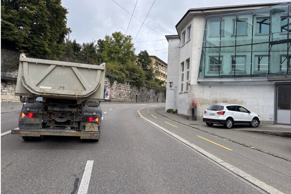 Am Freitagmittag (26.09.2025) um 09:45 Uhr fuhr ein 23-jähriger Lastwagenchauffeur auf der Mühlenstrasse in Schaffhausen auf dem linken Fahrstreifen in Richtung Feuerthalen und beabsichtigte, auf Höhe des Kraftwerks auf den rechten Fahrstreifen zu wechseln.