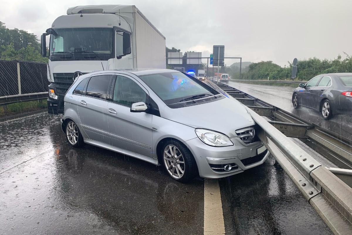 Um 09:45 Uhr am Donnerstag (09.06.2022) fuhr ein 43-jähriger Ukrainer mit einem Lastwagen auf der linken Fahrspur der A4 in der Stadt Schaffhausen in Richtung Zürich. Beim Wechsel mit seinem Fahrzeug auf die rechte Fahrspur übersah der Lastwagenchauffeur ein Auto, das auf dieser Spur von einem 37-jährigen Schweizer in die gleiche Richtung gelenkt wurde. In der Folge kam es zur seitlichen Kollision zwischen den beiden Fahrzeugen, worauf das Unfallauto rechtsseitig in die A4-Leitplanke und danach über die Fahrbahn gegen die linke Leitplanke geschleudert wurde.