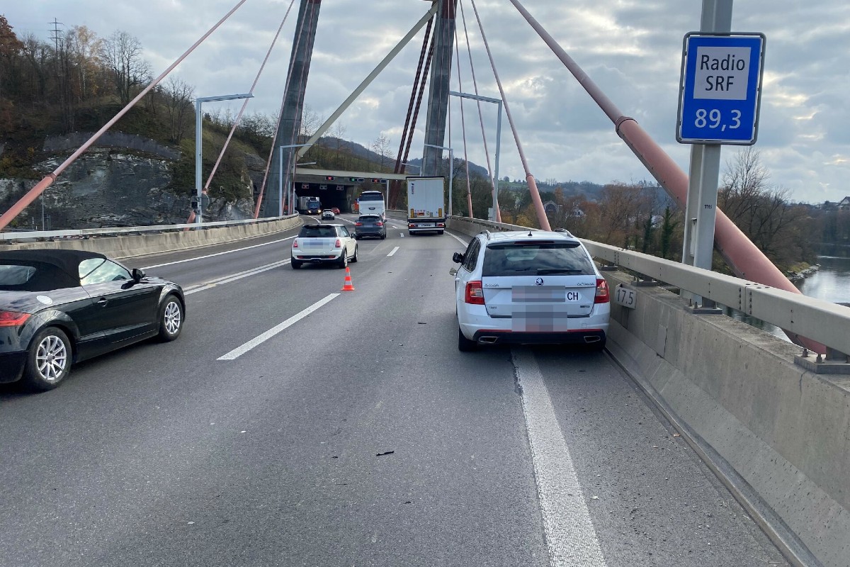 Am Mittwochnachmittag (07.12.2022) kam es zu einer Kollision zwischen einem Sattelmotorfahrzeug und einem Auto auf der A4-Schrägseilbrücke in Schaffhausen. Personen wurden dabei keine verletzt.