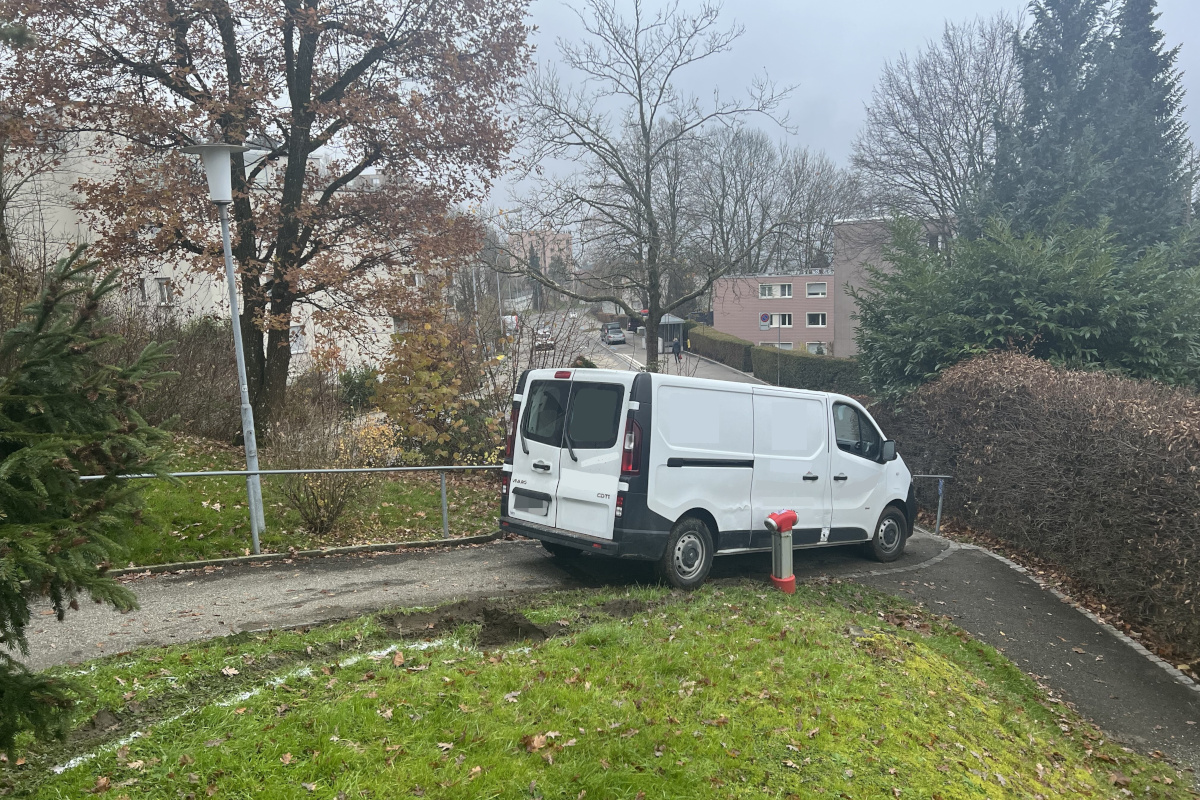 Am Freitagmorgen um 7 Uhr befuhr ein 40-Jähriger mit seinem Lieferwagen den Schorenweg. Dieser ist mit einem Fahrverbot für motorisierte Fahrzeuge belegt. In Folge der enger werdenden Verhältnisse versuchte der Lenker sein Gefährt zurückzusetzen. Aufgrund der Steigung gelang ihm dies nicht. Er setzte daher die Fahrt fort. Dabei touchierte er mit dem rechten Aussenspiegel einen Elektroverteilerkasten und mit der rechten Fahrzeugseite einen Hydranten. Durch seine Manöver fuhr er sein Fahrzeug fest.