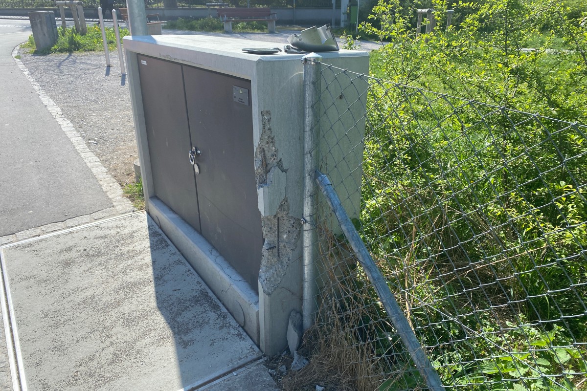 Die Spuren vom Unfall sieht man auch am Elektrokasten. (Bildquelle: Stadtpolizei St. Gallen)