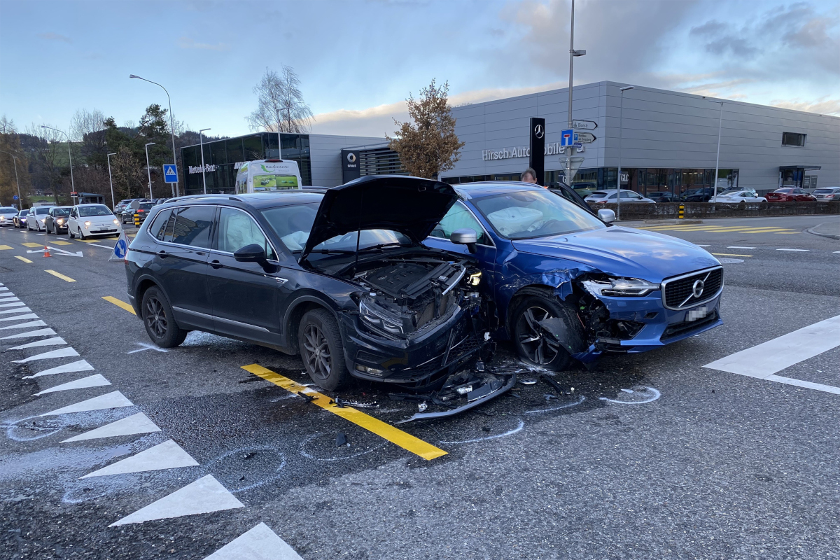 Rund zweieinhalb Stunden später kam es bei der gleichen Verzweigung zu einem weiteren Unfall. Hierbei fuhr ein 28-Jähriger mit seinem Auto auf der Geissbergstrasse in Richtung Abtwil und wollte nach links auf die Piccardstrasse einbiegen. Dabei übersah er eine 22-jährige Autofahrerin, welche auf der Geissbergstrasse in entgegensetzte Richtung unterwegs war. Es kam zur Kollision, bei welcher niemand verletzt wurde. Es entstand erneut hoher Sachschaden.