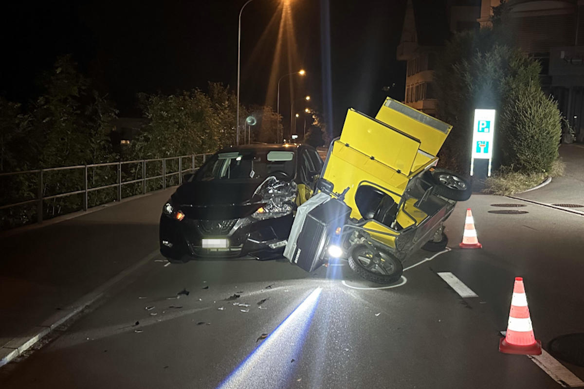 Am Dienstag (03.09.2024) kam es auf der Schorenstrasse zu einer Kollision zwischen einem dreirädrigen Kleinmotorradfahrer und einem Autofahrer. Verletzt wurde niemand. Es entstand Sachschaden.
