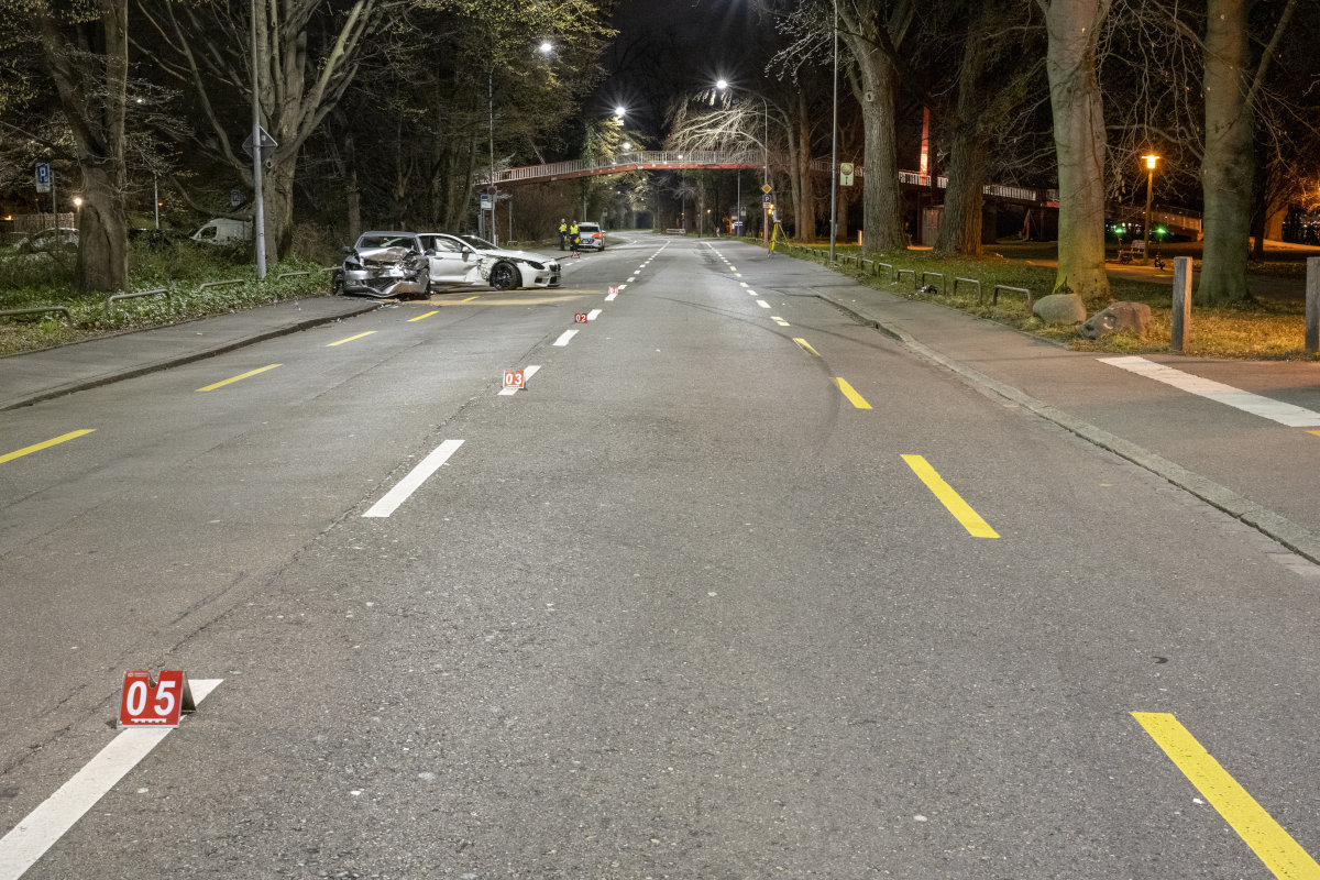 Gemäss ersten Erkenntnissen der Stadtpolizei Zürich fuhr ein 29-jähriger Kosovare kurz nach 21.30 Uhr bei der BP Tankstelle am Mythenquai in Richtung stadteinwärts. Er beschleunigte sein hoch motorisiertes Auto mit 560 PS stark und verlor dabei die Herrschaft über seinen weissen BMW M6. In der Folge geriet er auf die Gegenfahrbahn und kollidierte mit einem korrekt entgegenkommenden Personenwagen.