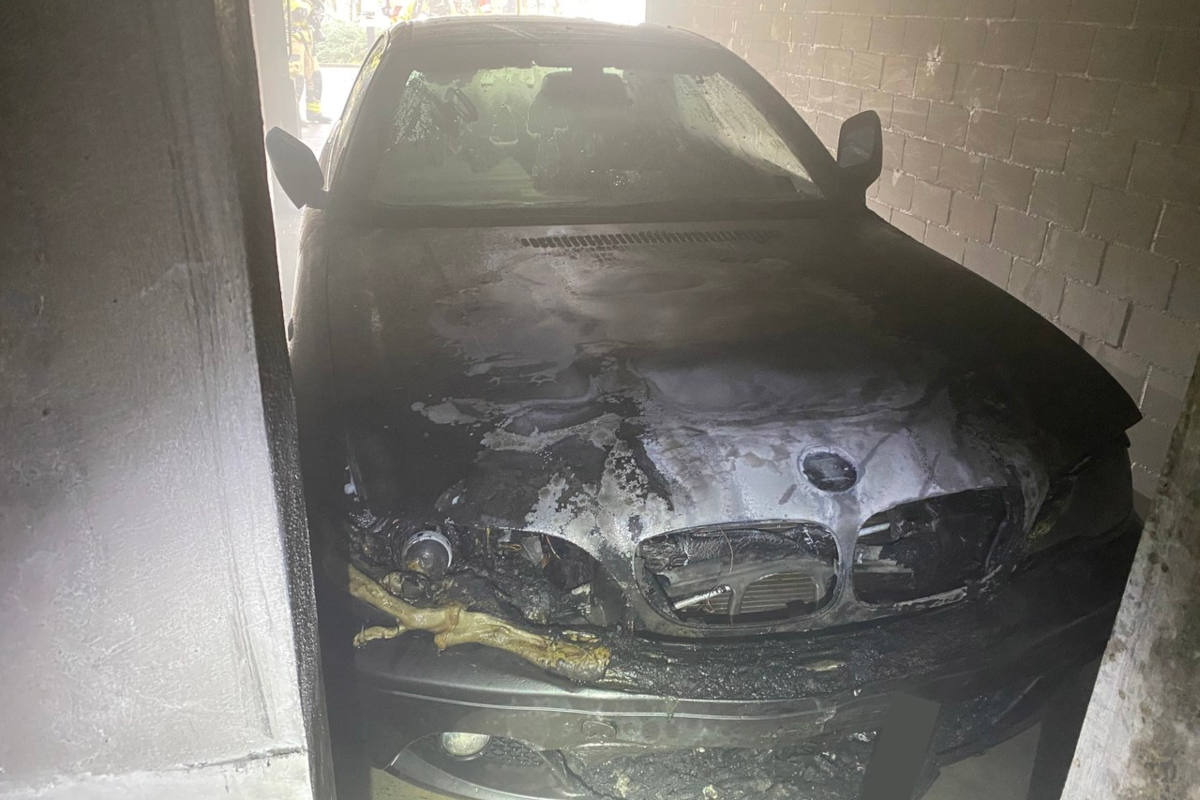 BMW bei Brand in Garagenbox komplett zerstört (Bildquelle: Kapo ZG)