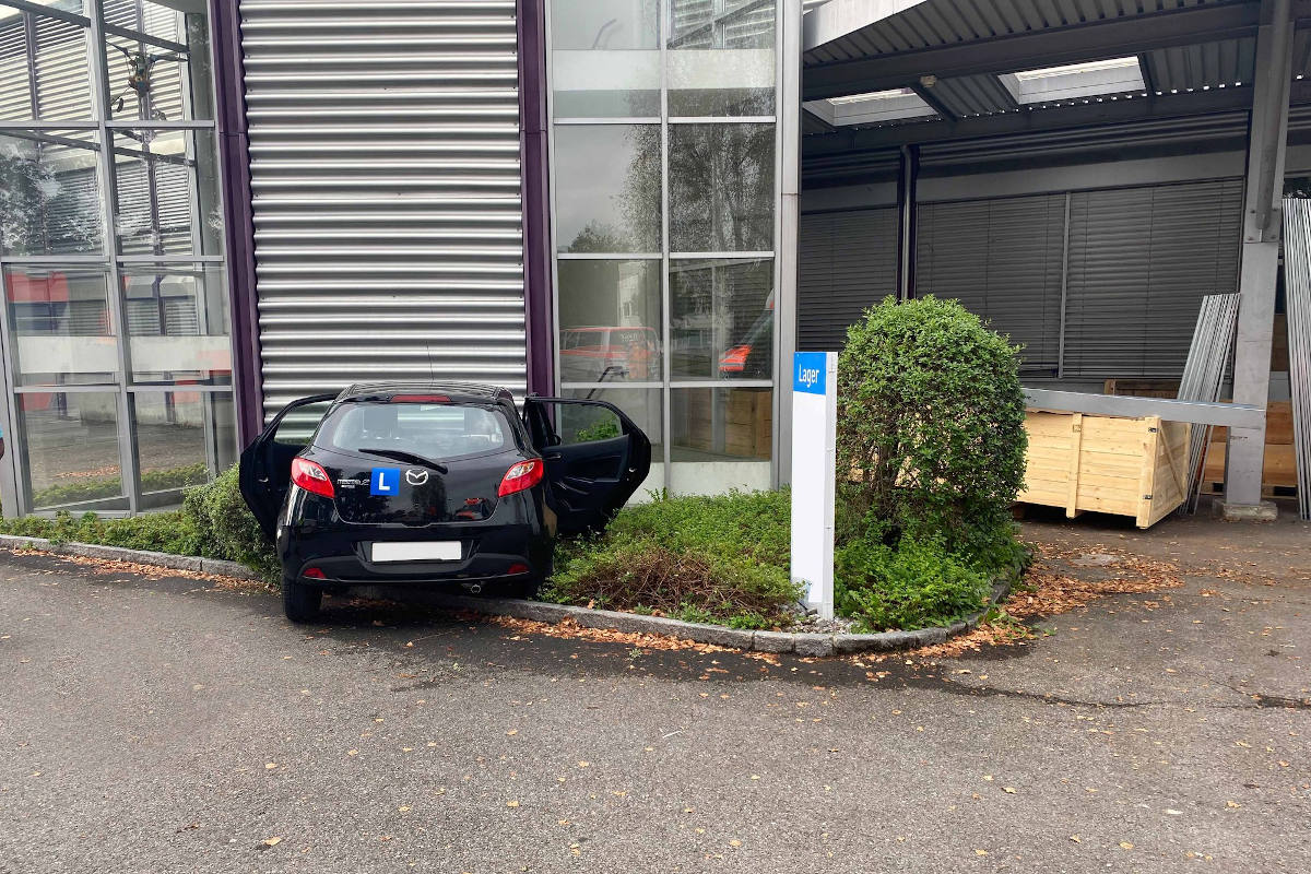 Der Unfall ereignete sich am Sonntagnachmittag (26. September 2021), kurz nach 14:00 Uhr, auf einem Vorplatz einer Firma an der Steinhauserstrasse in Zug. Bei einem Fahrmanöver hat eine 46-jährige Lernfahrerin die Kontrolle über ihr Auto verloren und ist frontal in die Gebäudemauer geprallt.