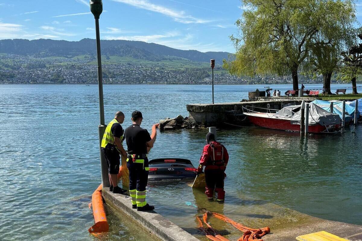 Ein Auto machte sich am heutigen Sonntagmorgen (14.4.2024) auf einem Parkplatz in Stäfa selbständig und stürzte in den Zürichsee. Verletzt wurde niemand.