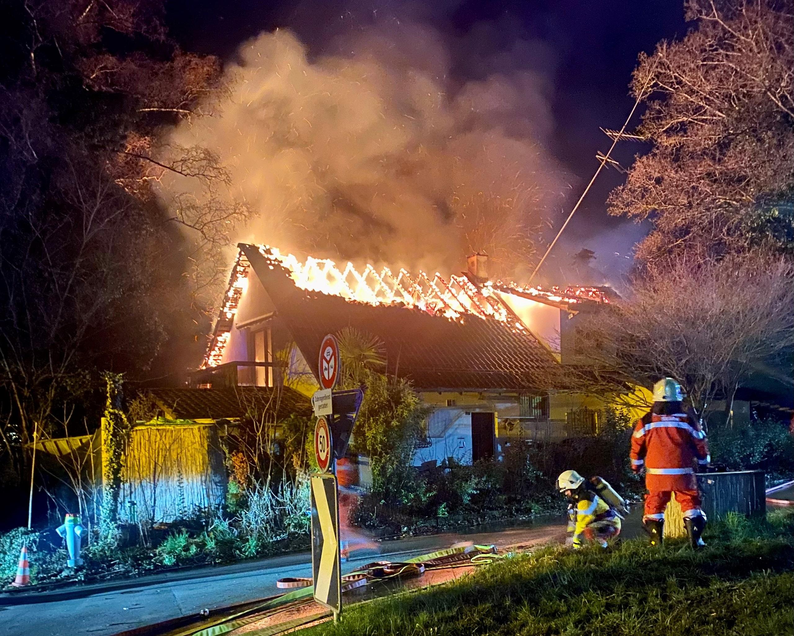 Um circa 22 Uhr ging bei der Einsatzzentrale von Schutz & Rettung Zürich die Meldung ein, dass der Dachstock eines Einfamilienhauses brennen würde. Beim Eintreffen der Feuerwehr befand sich die einzige anwesende Bewohnerin bereits im Freien. Verletzt wurde niemand. Die Löschkräfte hatten den Brand schnell unter Kontrolle. Die Löscharbeiten dauern jedoch noch an und gestalten sich wegen der Bauart des Gebäudes schwierig. Das Haus ist nicht mehr bewohnbar. Der Sachschaden beträgt mehrere Hunderttausend Franken.