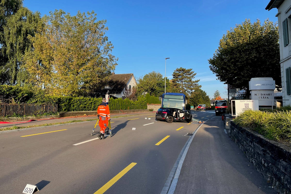 Bei einem Verkehrsunfall zwischen einem Personenwagen und einem Linienbus am Montagmorgen (11.10.2021) in Stäfa ist der Automobilist schwer verletzt worden.