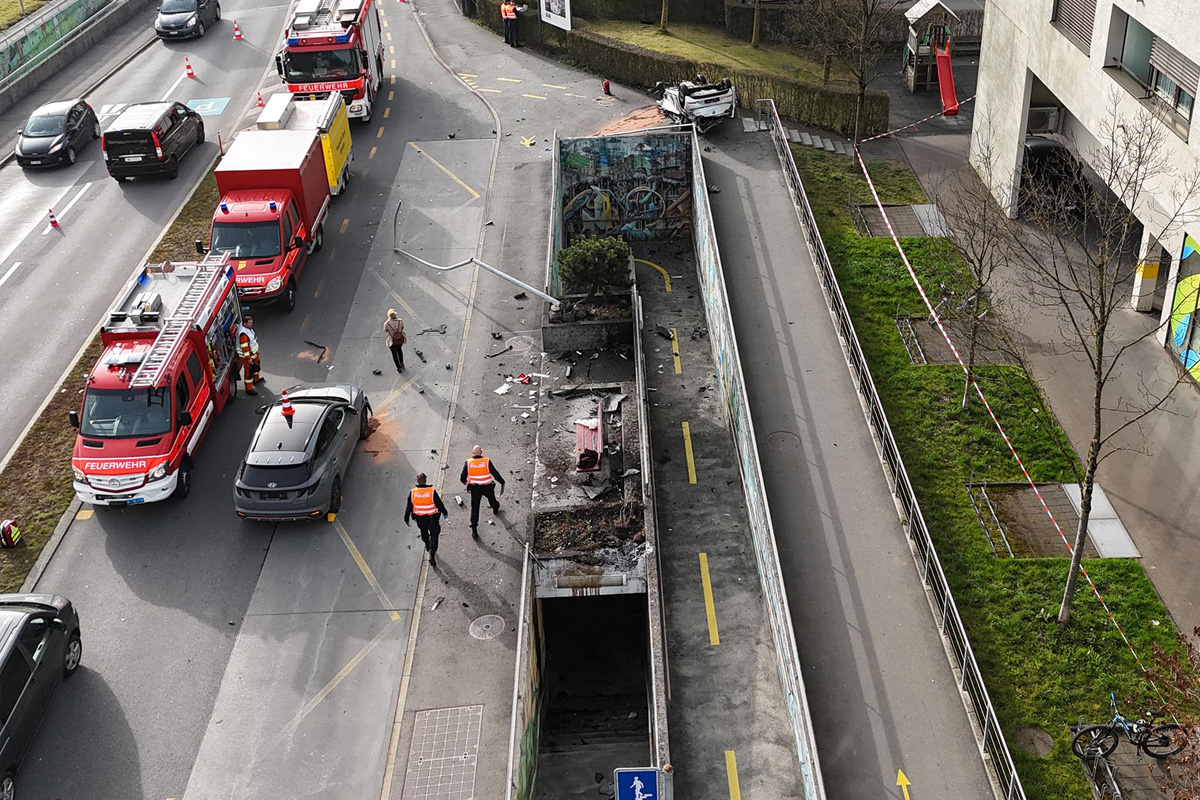 In der Folge kollidierte der Fahrzeuglenker mit dem Bordstein und flog über die dortige Unterführung und kam auf dem Dach nach der Unterführung zum Stillstand. Dabei wurde nebst dem Fahrzeuglenker ein sich auf dem Trottoir befindliches 7-jähriges