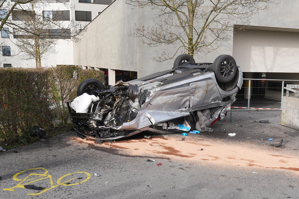 Fahrzeug überschlug sich und kam auf dem angrenzenden Trottoir zur Endstellung.