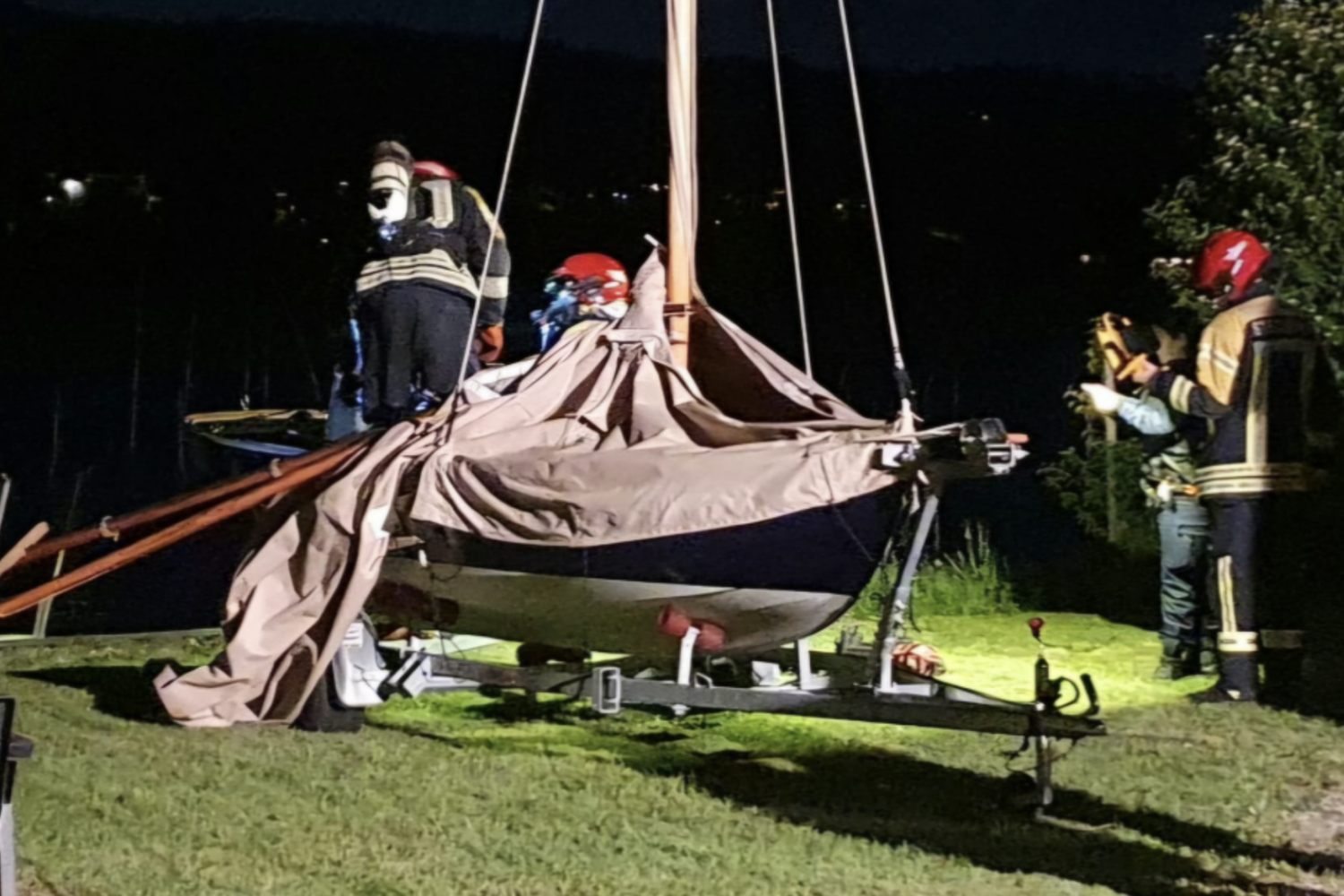 Kurz nach 22 Uhr ging bei der Kantonalen Notrufzentrale die Meldung ein, dass ein Brand bei einem Segelschiff in einem Garten an der Seestrasse ausgebrochen sei.