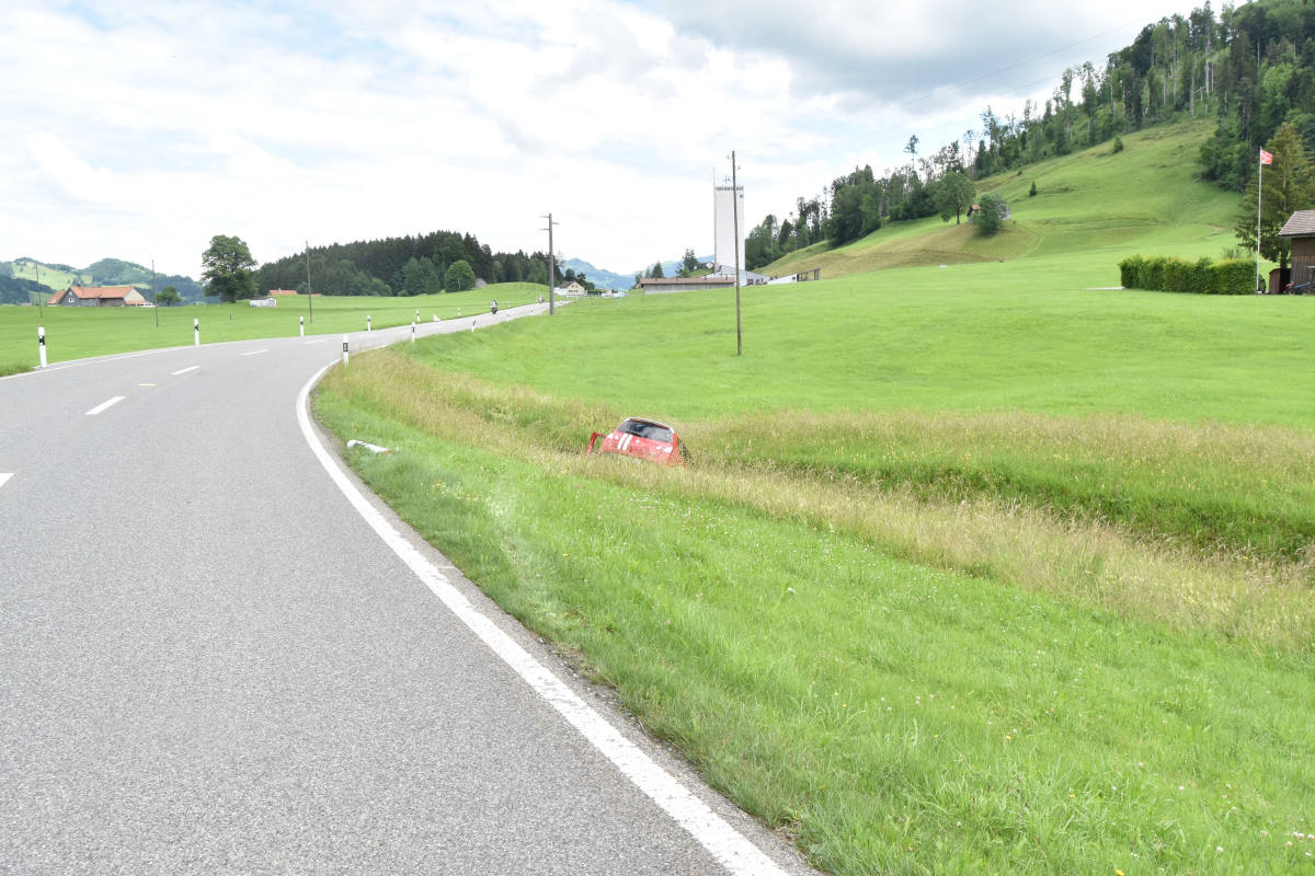 Kurz vor 14:00 Uhr fuhr eine 41-jährige Automobilistin auf der Hauptstrasse von Stein in Richtung Appenzell. Unmittelbar vor einer Rechtskurve geriet sie aus noch unbekannten Gründen neben die Fahrbahn. Dabei fuhr sie in die angrenzende Wiese und kam mit der Front im Sonderbach stehend zum Stillstand.