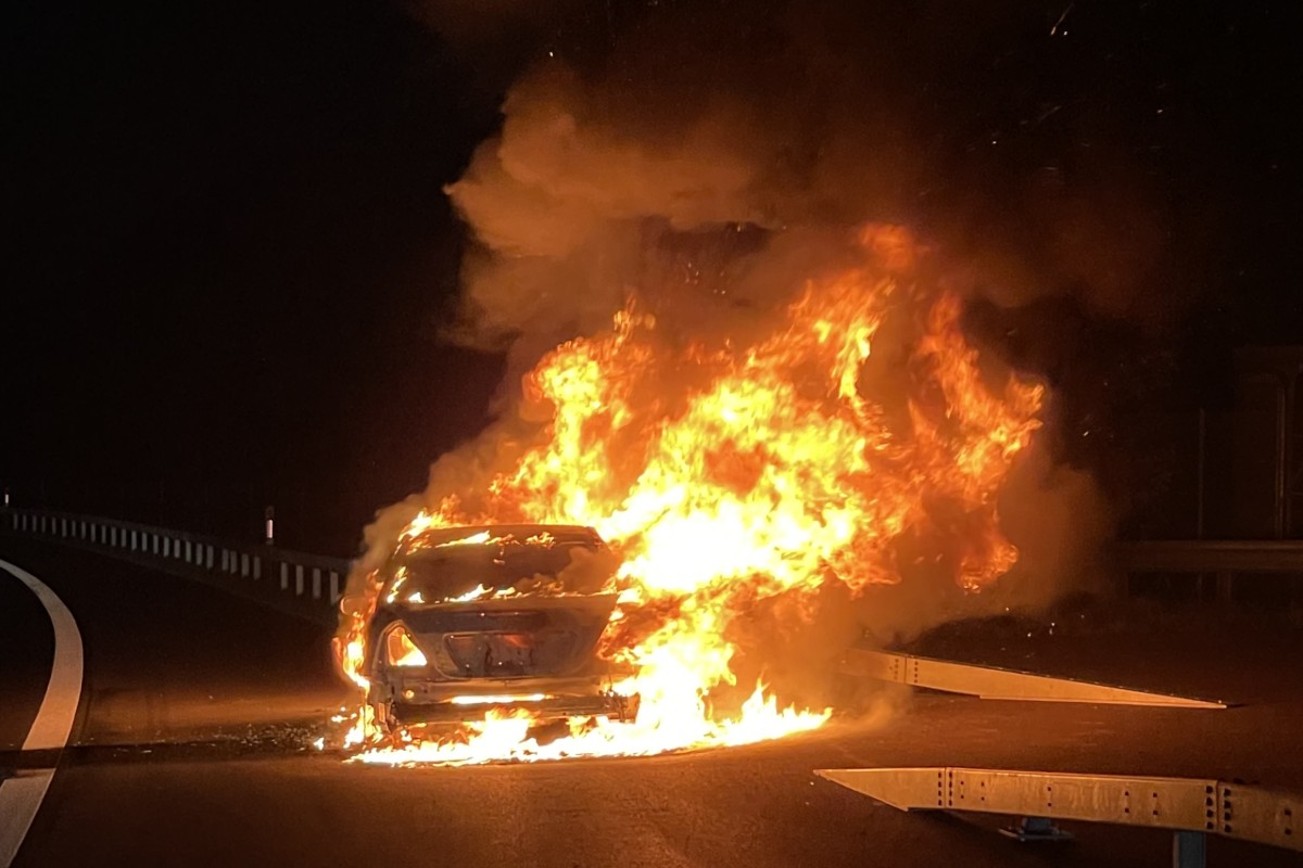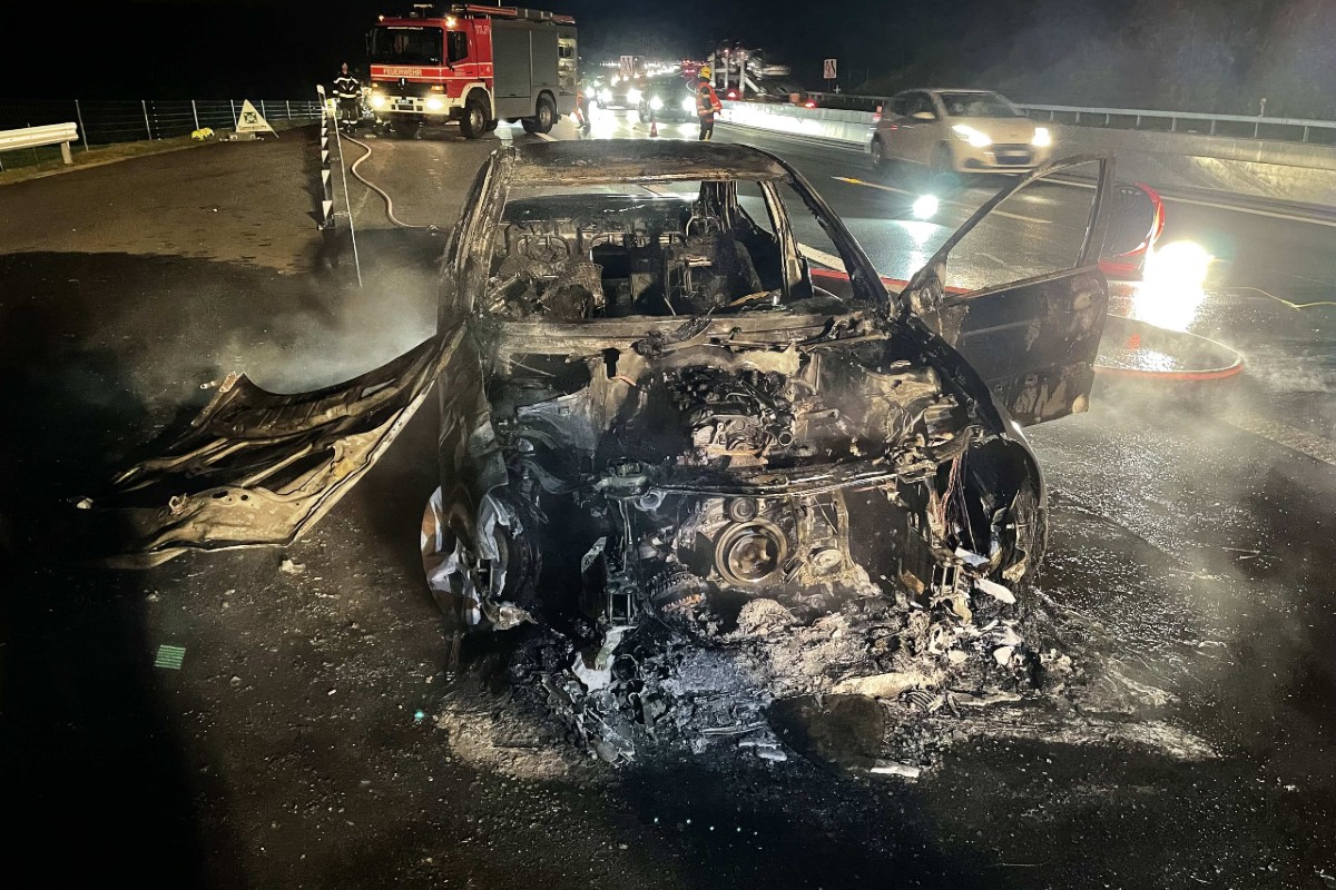 Steinen SZ - Auto brennt auf der Autobahn A4 aus