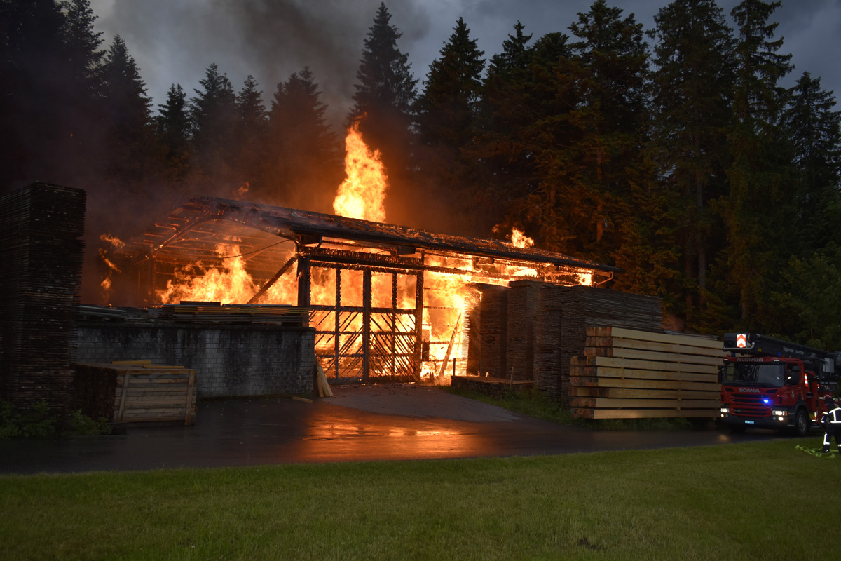 Eine Sägerei stand im Gebiet Ober-Schwendi im Vollbrand. Das Gebäude ist komplett niedergebrannt. Im Einsatz standen die Feuerwehren Wolhusen und Menznau. Verletzt wurde niemand.