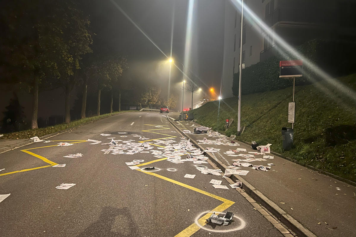 Die Zeitungen lagen auf der ganzen Strasse verstreut. (Bildquelle: Stadtpolizei St.Gallen)