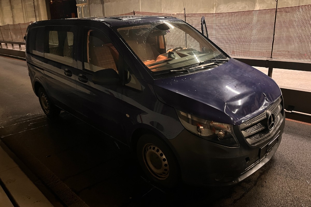 Der Lieferwagen prallte in ein Auto eines Tunnel-Arbeiters. (Bildquelle: Kantonspolizei St. Gallen)