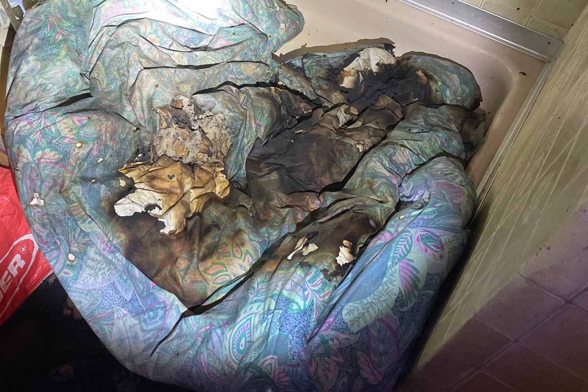 Die Bettdecke begann in St.Gallen zu brennen, konnte aber durch den Mann gelöscht werden (Bildquelle: Stadtpolizei St.Gallen)